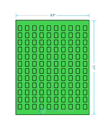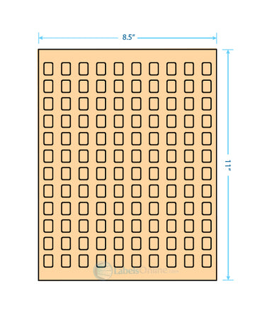 Sheet Size: 8 1/2" x 11" Label Shape: Round Corners Label Size: .42" x .58" Labels/Sheet: 120 Perforation: No Perf