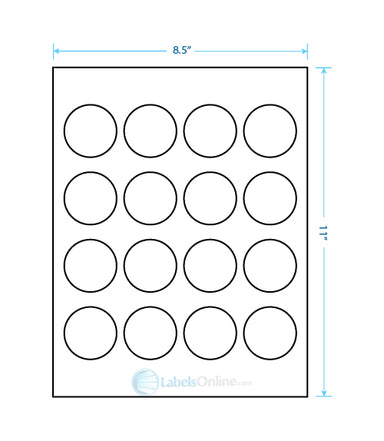 Sheet Size: 8 1/2" x 11" Label Shape: Circles Label Size: 1.75" Labels/Sheet: 16 Perforation: No Perf