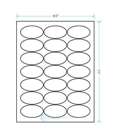 Sheet Size: 8 1/2" x 11" Label Shape: Ovals Label Size: 2.5" x 1.375" Labels/Sheet: 21 Perforation: No Perf