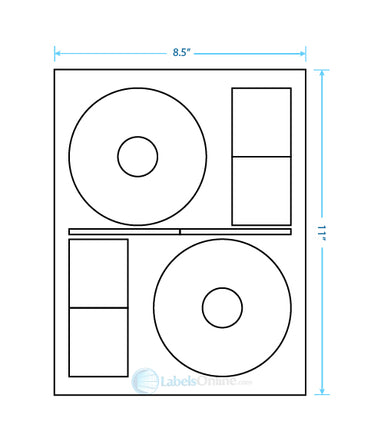 Sheet Size: 8 1/2" x 11" Label Shape: Circles Label Size: 4.65" CD Labels/Sheet: 2 Perforation: No Perf