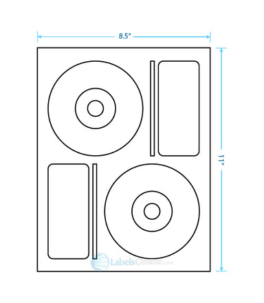 Sheet Size: 8 1/2" x 11" Label Shape: Circles Label Size: 4.656" CD Labels/Sheet: 2 Perforation: No Perf Compare to: Memorex