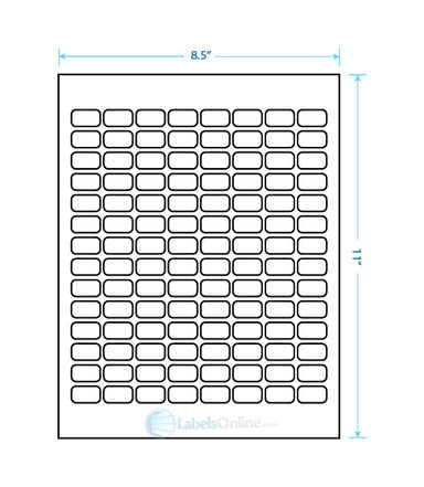 Sheet Size: 8 1/2" x 11" Label Shape: Round Corners Label Size: .42" x .58" Labels/Sheet: 120 Perforation: No Perf