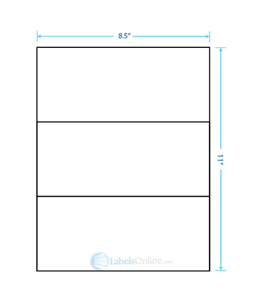 Sheet Size: 8 1/2" x 11" Label Shape: Square Corners Label Size: 8.5" x 3.666" Labels/Sheet: 3 Perforation: No Perf