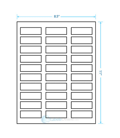 Sheet Size: 8 1/2" x 11" Label Shape: Square Corners Label Size: 2.25" x .75" Labels/Sheet: 30 Perforation: No Perf Compare to: Avery 8...