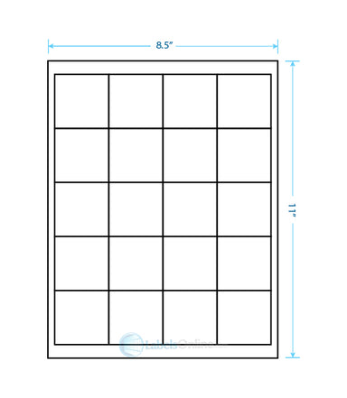 Sheet Size: 8 1/2" x 11" Label Shape: Square Corners Label Size: 2" x 2" Labels/Sheet: 20 Perforation: No Perf