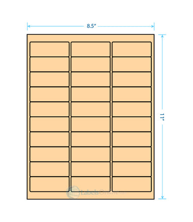 Sheet Size: 8 1/2" x 11" Label Shape: Round Corners Label Size: 2.625" x 1" Labels/Sheet: 30 Perforation: Perforated