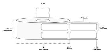 Width:1" Length:0.5" Core Diameter:1" Outer Diameter:4" Product Line:Premium Direct Thermal Printer Type:Desktop Material:Direct Ther...