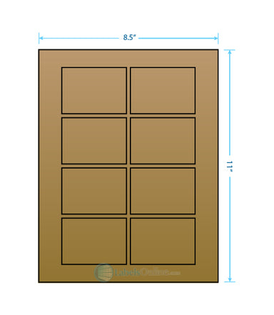 Sheet Size: 8 1/2" x 11" Label Shape: Square Corners Label Size: 3.5" x 2.375" Labels/Sheet: 8 Perforation: No Perf