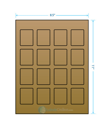 Sheet Size: 8 1/2" x 11" Label Shape: Square Corners Label Size: 1.5" x 1.5" Labels/Sheet: 35 Perforation: No Perf