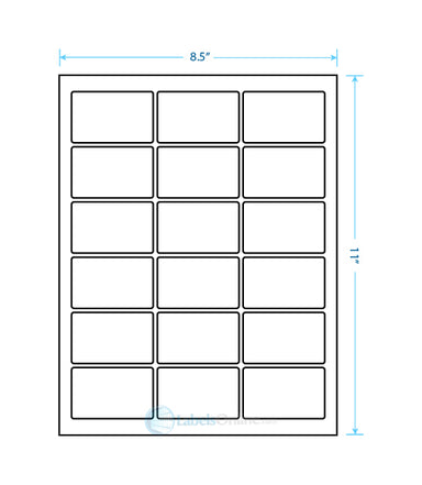 Sheet Size: 8 1/2" x 11" Label Shape: Round Corners Label Size: 2.5" x 1.5625" Labels/Sheet: 18 Perforation: No Perf