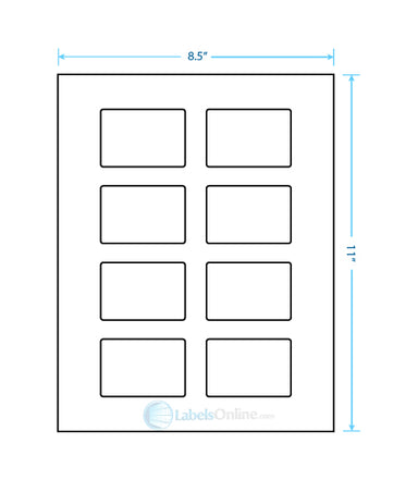 Sheet Size: 8 1/2" x 11" Label Shape: Round Corners Label Size: 2.6" x 1.77" Labels/Sheet: 8 Perforation: No Perf