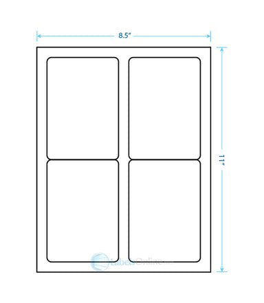 Sheet Size: 8 1/2" x 11" Label Shape: Round Corners Label Size: 3" x 5" Labels/Sheet: 4 Perforation: No Perf