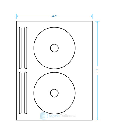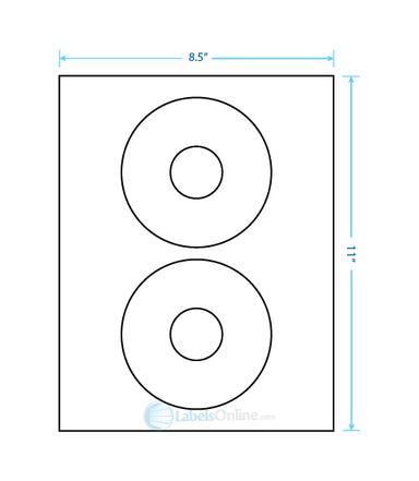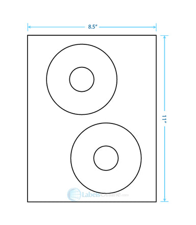 Sheet Size: 8 1/2" x 11" Label Shape: Circles Label Size: 4.65" CD Labels/Sheet: 2 Perforation: No Perf