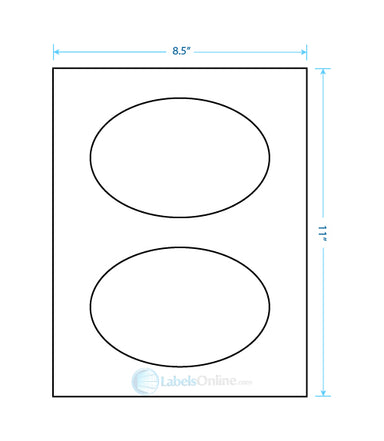 Sheet Size: 8 1/2" x 11" Label Shape: Ovals Label Size: 6" x 4" Labels/Sheet: 2 Perforation: No Perf