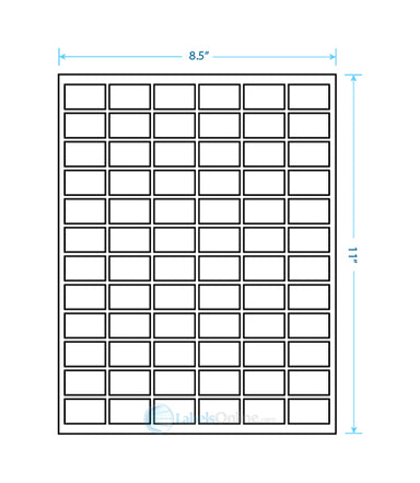 Sheet Size: 8 1/2" x 11" Label Shape: Square Corners Label Size: 1.7225" x .5" Labels/Sheet: 80 Perforation: No Perf