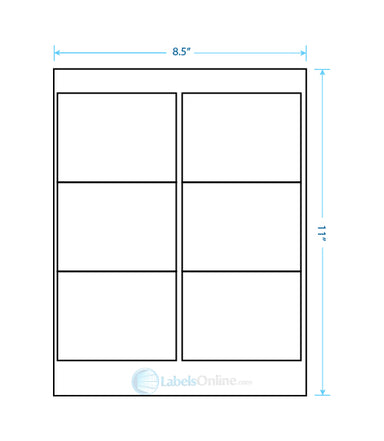 Sheet Size: 8 1/2" x 11" Label Shape: Square Corners Label Size: 4" x 3.5" Labels/Sheet: 6 Perforation: No Perf