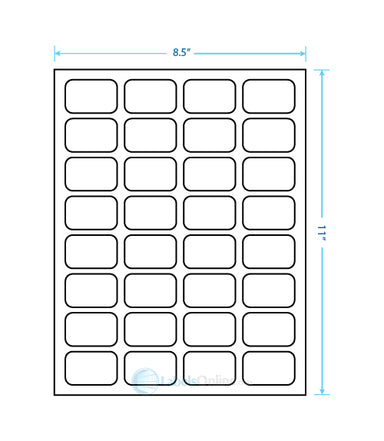 Sheet Size: 8 1/2" x 11" Label Shape: Round Corners Label Size: 1.75" x 1.125" Labels/Sheet: 32 Perforation: No Perf