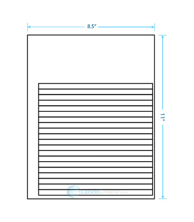 Sheet Size: 8 1/2" x 11" Label Shape: Square Corners Label Size: 7.625" x .375" Labels/Sheet: 20 Perforation: No Perf