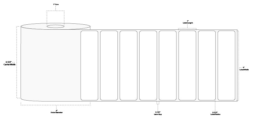 4" x 1" Standard Direct Thermal Paper Label; Perforated; 1" Core; 4" OD; 4 Rolls/carton (1,310 Labels/roll)