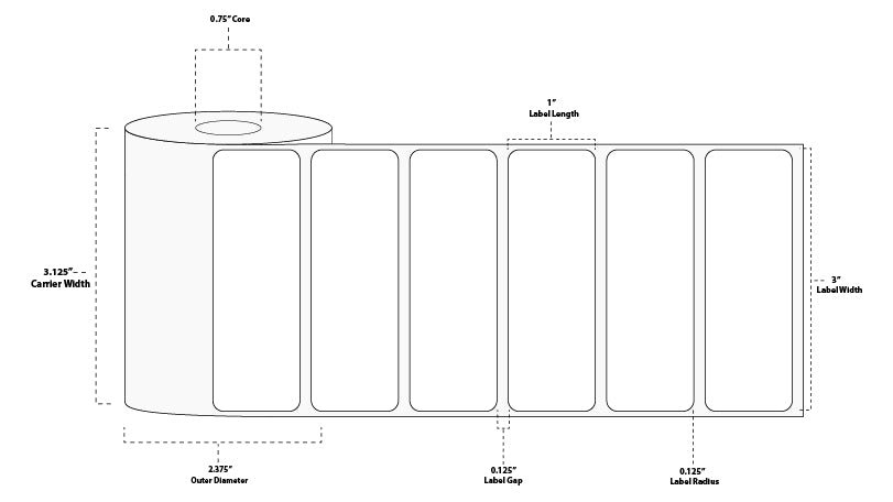 3" x 1" Premium Direct Thermal Paper Label; Perforated; 0.75" Core; 2.375" OD; 24 Rolls/carton (550 Labels/roll)