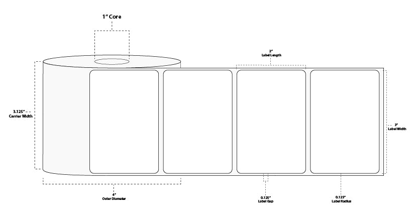 3" x 2" Premium Direct Thermal Paper Label; Perforated; 1" Core; 4" OD; 12 Rolls/carton (735 Labels/roll)