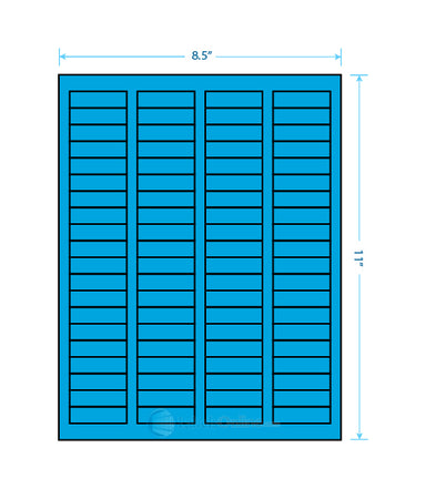 Sheet Size: 8 1/2" x 11" Label Shape: Square Corners Label Size: 1.7225" x .5" Labels/Sheet: 80 Perforation: No Perf