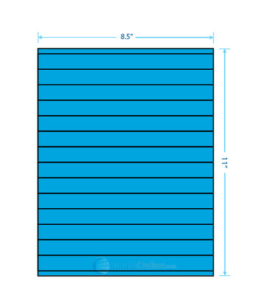 Sheet Size: 8 1/2" x 11" Label Shape: Square Corners Label Size: 8.5" x .75" Labels/Sheet: 14 Perforation: No Perf