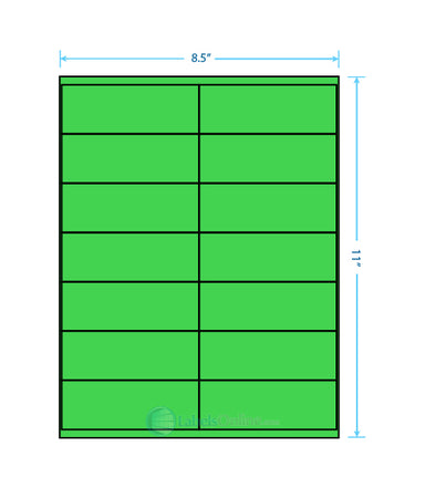 Sheet Size: 8 1/2" x 11" Label Shape: Square Corners Label Size: 4.1875" x 1.5" Labels/Sheet: 14 Perforation: No Perf