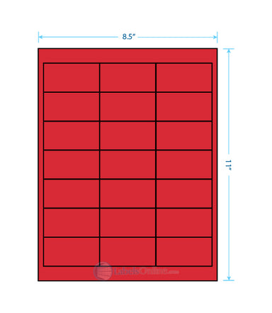 Sheet Size: 8 1/2" x 11" Label Shape: Square Corners Label Size: 2.66" x 1.375" Labels/Sheet: 21 Perforation: No Perf