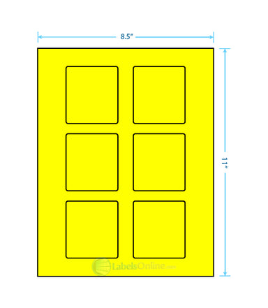 Sheet Size: 8 1/2" x 11" Label Shape: Round Corners Label Size: 3.25" x 3" Labels/Sheet: 6 Perforation: No Perf