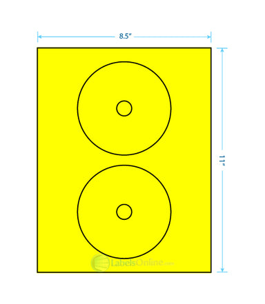 Sheet Size: 8 1/2" x 11" Label Shape: Circles Label Size: 4.57" CD Labels/Sheet: 2 Perforation: No Perf
