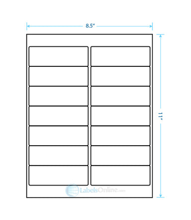 Sheet Size: 8 1/2" x 11" Label Shape: Square Corners Label Size: 4.25" x 1.5" Labels/Sheet: 14 Perforation: No Perf