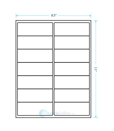 Sheet Size: 8 1/2" x 11" Label Shape: Square Corners Label Size: 4.1875" x 1.5" Labels/Sheet: 14 Perforation: No Perf