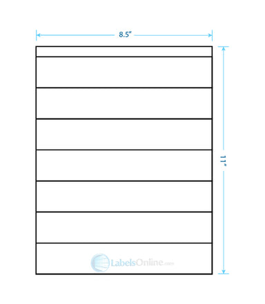 Sheet Size: 8 1/2" x 11" Label Shape: Square Corners Label Size: 8.5" x 1.5" Labels/Sheet: 7 Perforation: No Perf