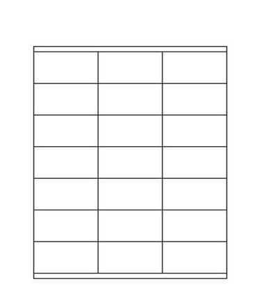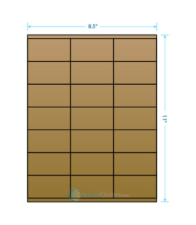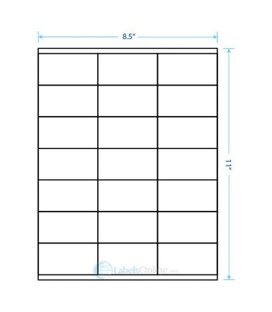 Sheet Size: 8 1/2" x 11" Label Shape: Square Corners Label Size: 2 5/6" x 1 1/2" Labels/Sheet: 21 Perforation: No Perf