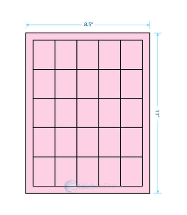 Sheet Size: 8 1/2" x 11" Label Shape: Square Corners Label Size: 1.5" x 2" Labels/Sheet: 25 Perforation: No Perf