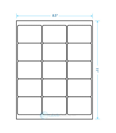 Sheet Size: 8 1/2" x 11" Label Shape: Round Corners Label Size: 2.6875" x 2" Labels/Sheet: 15 Perforation: No Perf