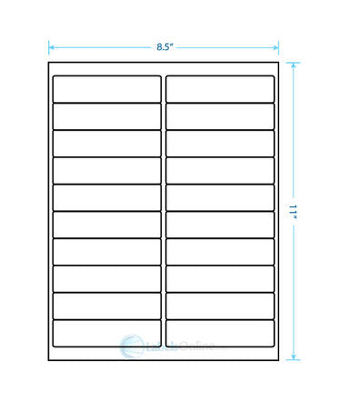 Sheet Size: 8 1/2" x 11" Label Shape: Square Corners Label Size: 4" x 1" Labels/Sheet: 20 Perforation: No Perf