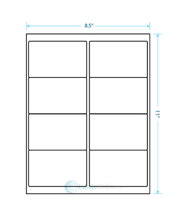 Sheet Size: 8 1/2" x 11" Label Shape: Square Corners Label Size: 4" x 3" Labels/Sheet: 6 Perforation: No Perf