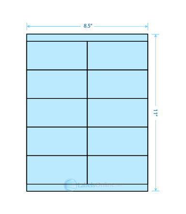 Sheet Size: 8 1/2" x 11" Label Shape: Square Corners Label Size: 4.25" x 2.2" Labels/Sheet: 10 Perforation: No Perf