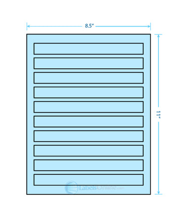 Sheet Size: 8 1/2" x 11" Label Shape: Round Corners Label Size: 7.5" x .75" Labels/Sheet: 10 Perforation: No Perf