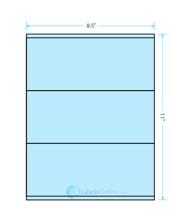 Sheet Size: 8 1/2" x 11" Label Shape: Square Corners Label Size: 8.5" x 3.5" Labels/Sheet: 3 Perforation: No Perf