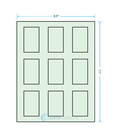 Sheet Size: 8 1/2" x 11" Label Shape: Round Corners Label Size: 1.6562" x 2.75" Labels/Sheet: 9 Perforation: No Perf