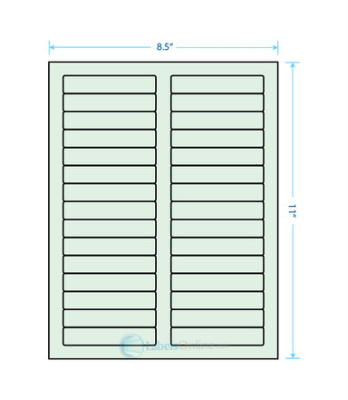 Sheet Size: 8 1/2" x 11" Label Shape: Round Corners Label Size: 3.4375" x .667" Labels/Sheet: 30 Perforation: No Perf Compare to: Avery...