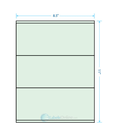 Sheet Size: 8 1/2" x 11" Label Shape: Square Corners Label Size: 8.5" x 3.5" Labels/Sheet: 3 Perforation: No Perf