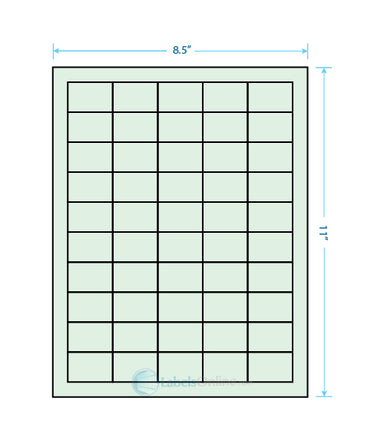 Sheet Size: 8 1/2" x 11" Label Shape: Square Corners Label Size: 1.5" x 1" Labels/Sheet: 50 Perforation: No Perf