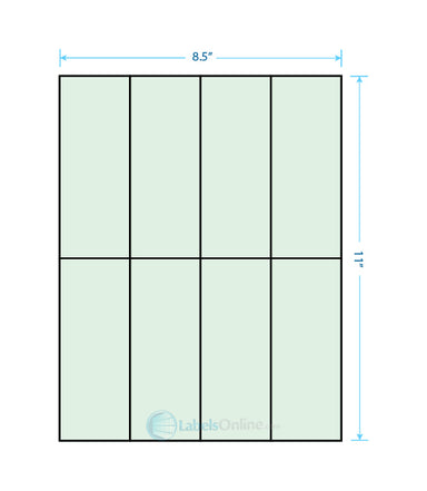 Sheet Size: 8 1/2" x 11" Label Shape: Square Corners Label Size: 2.125" x 5.5" Labels/Sheet: 8 Perforation: No Perf