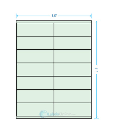 Sheet Size: 8 1/2" x 11" Label Shape: Square Corners Label Size: 4.1875" x 1.5" Labels/Sheet: 14 Perforation: No Perf
