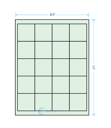 Sheet Size: 8 1/2" x 11" Label Shape: Square Corners Label Size: 2" x 2" Labels/Sheet: 20 Perforation: No Perf