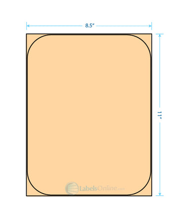 Sheet Size: 8 1/2" x 11" Label Shape: Round Corners Label Size: 8.375" x 10.875" Labels/Sheet: 1 Perforation: No Perf